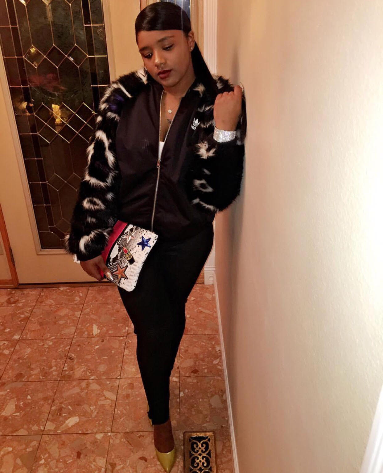 - Adding leather and diamond can bring so much life to your outfit of all black or all white.